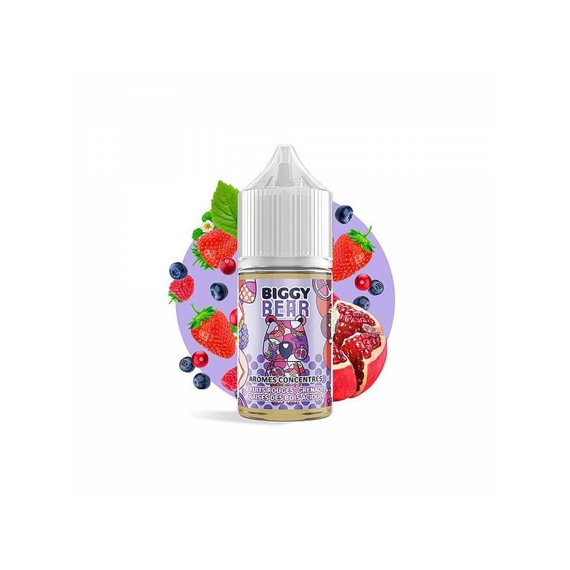 Explorez l'arôme concentré "Fruits rouges Grenade Fraises" de la marque Biggy Bear, une véritable explosion de saveurs à intégrer dans vos e-liquides. Les saveurs délicieusement sucrées des fruits rouges se marient à la subtile amertume de la grenade, le tout parfaitement équilibré avec la fraîcheur des fraises. Une fusion exquise qui éveillera vos sens à chaque bouffée. Ce concentré, disponible en flacon de 30ml, vous offre l'opportunité de libérer votre créativité et d'innover dans le monde des e-liquides grâce à Biggy Bear.