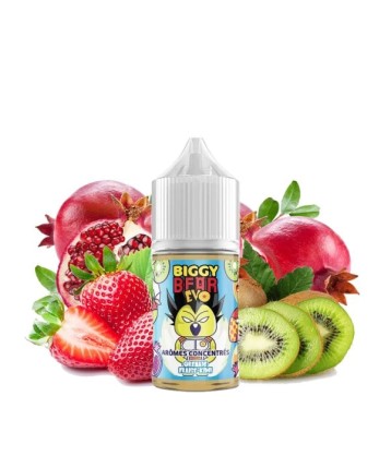 Concentré Grenade Fraise Kiwi 30ml - Biggy Bear. Un trio fruité de grenade juteuse, fraise sucrée et kiwi acidulé pour un e-liquide DIY rafraîchissant. Dosage recommandé : 9%, temps de steep : 1 semaine, sans nicotine.