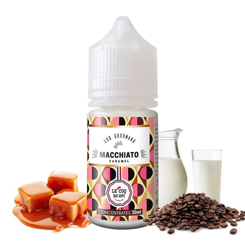 Le délicieux DIY pour préparer tout vos e-liquides pour cigarette électronique avec du caramel, du café macchiato enrobé de caramel coulant ; c'est le Concentré Macchiato Caramel 30ml de la marque Le Coq Qui Vape !