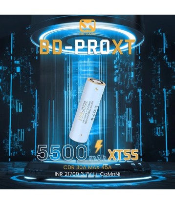L'Accu High-End BD-PRO XT55 21700 5500mAh by BD Vape représente le nec plus ultra en matière d’autonomie et de puissance pour les vapoteurs exigeants. Conçu au format 21700, cet accu de très haute capacité offre 5500mAh, une énergie suffisante pour garantir des séances de vape prolongées tout en maintenant une performance constante. Que vous soyez un vapoteur intensif ou un amateur de puissance, le XT55 répond à toutes vos attentes.