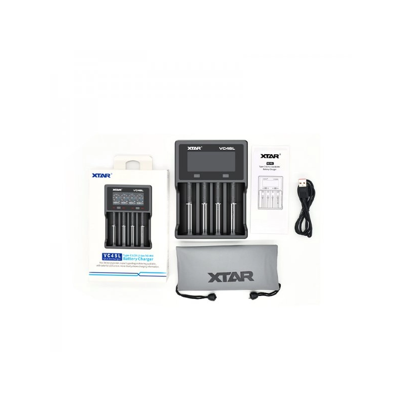 Chargeur VC4SL XTAR. Un puissant chargeur qui peut recharger tous les types d'accus IMR, Li-Ion, INR, ICR et même les accus de type AA, AAA, NI-MH et NI-CD. Ses quatre slots donnent la possibilité de charger les accus allant du format 10440 au format 32650 !