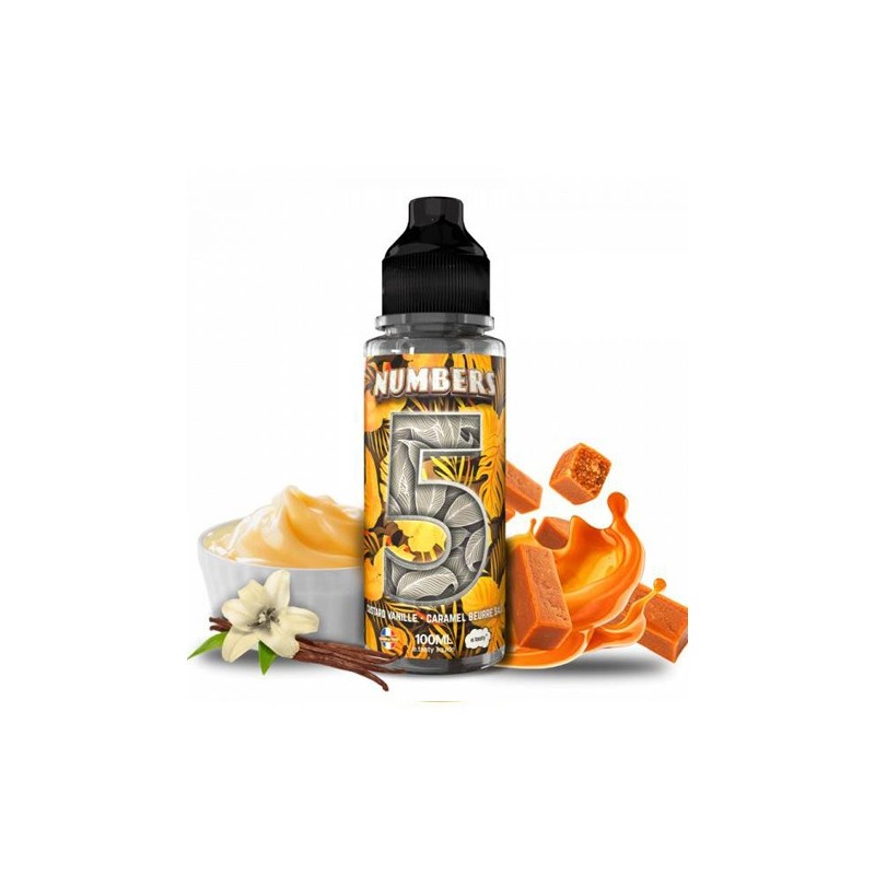 Fabriqué en France avec un ratio PG/VG de 40/60, l'e liquide Numbers Cinq est conditionné dans un format de 100ml sans nicotine.