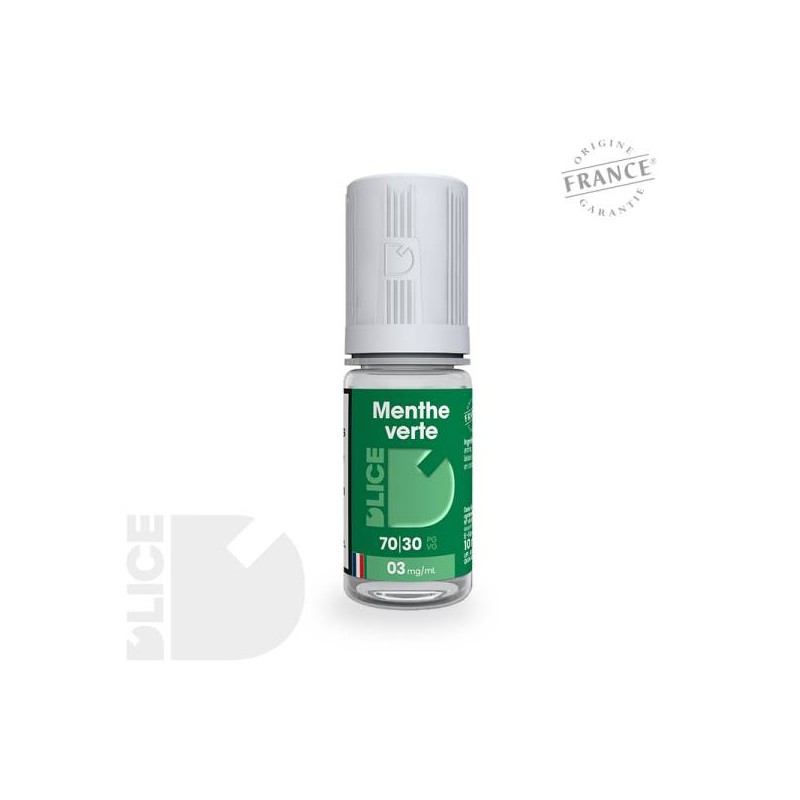 Une bouffée d'air pur en chaque inhalation. Le e-liquide Menthe Verte DLICE capture l'essence vibrante d'une menthe fraîchement cueillie, avec ses notes végétales caractéristiques et sa fraîcheur longue en bouche. Prêt à vapoter dès l'ouverture avec un ratio 70/30 PG/VG pour un hit net et des nuages équilibrés. Fabriqué en France avec des arômes naturels premium.
