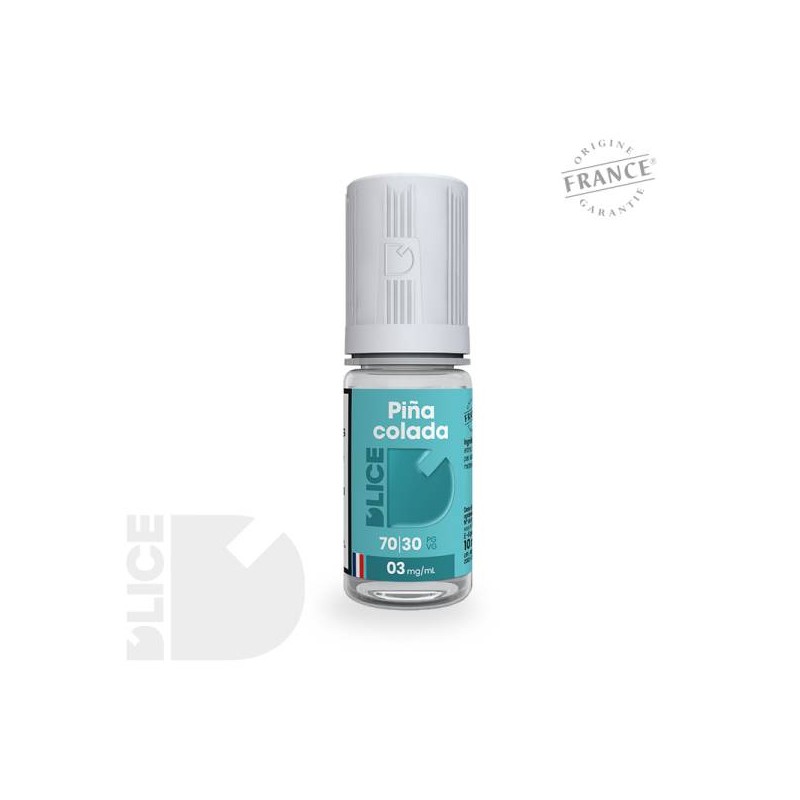 E-liquide D'lice Pina Colada, est un cocktail à base de rhum, de jus d'ananas et de crème de coco, e-liquide français fabriqué par D'lice.