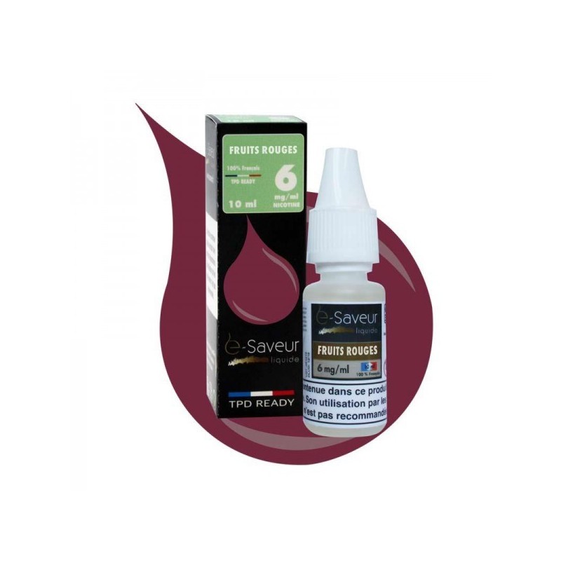 E liquide Fruits rouges E-saveur 10ml. Un mélange de saveurs fruits des bois plein de douceur et très “tutti frutti”. On savoure sa rondeur.