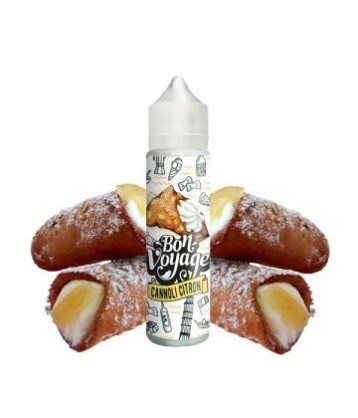 E liquide Cannoli Citron 50ml Bon Voyage. Une gourmandise crémeuse au citron tout droit venue d'Italie. L'e-liquide est conditionné dans un flacon de 60ml rempli à 50ml de liquide en 0 de nicotine.