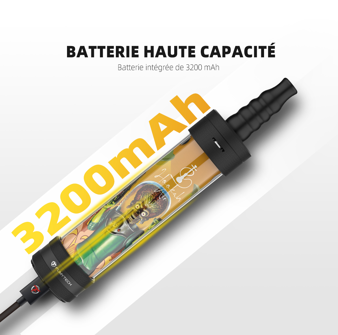 E-Chicha Portable Hookah Air Rabbit de Fumytech est équipé d'une batterie intégrée colossale de 3200mAh