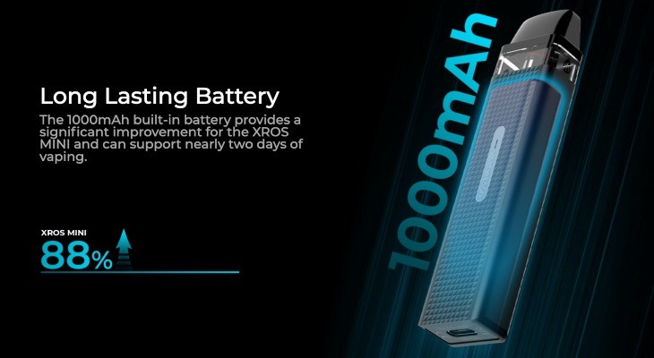 Avec ses dimensions de 24 mm x 14.12 mm x 107.51 mm, le Pod Xros Mini 4 est un véritable concentré de technologie dans un format ultra-compact. Sa batterie intégrée de 1000 mAh vous assure une autonomie fiable pour une utilisation quotidienne, tandis que son corps en aluminium lui confère une légèreté et une robustesse remarquables.