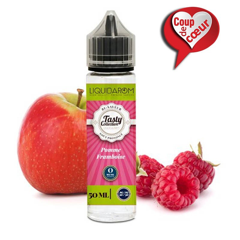Mélange surprenant mais parfaitement dosé, le e-liquide Pomme Framboise vous fait revivre, à chaque expiration, le goût d’une délicieuse salade de fruits estivale préparé avec passion et amour. Vous allez être surpris !Le e-liquide Pomme Framboise est un e-liquide fabriqué en France de la gamme Tasty Collection de Liquidarom.