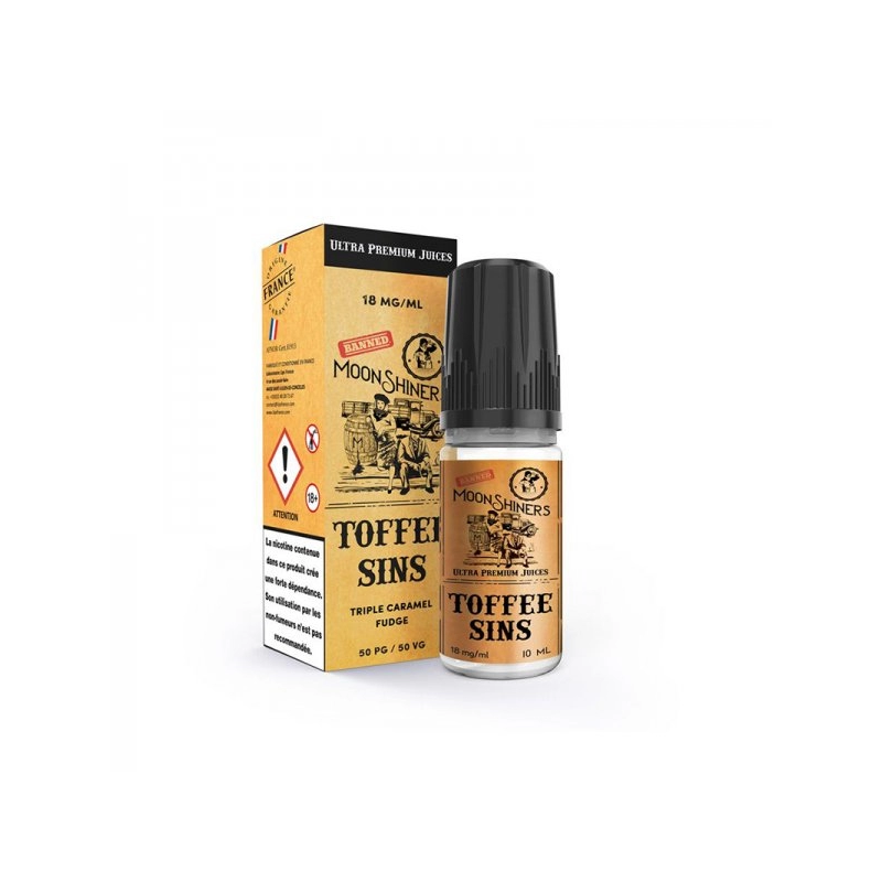 L'e-liquide Moonshiners vous fera voyager vous et vos papilles vers de nouvelles contrées. Grâce à l'E-liquide Toffee Sins ultra haut de gamme, retrouvez une restitution fidèle de la saveur d'une liqueur préparée avec un savoir-faire artisanal unique. Il est sans douter que vous ferez de ce e-liquide votre nouveau compagnon car une saveur de caramel, encore chaud et fondant, est mise au premier plan et une note de sucre roux apporte toute sa rondeur et une touche ambrée à la recette.