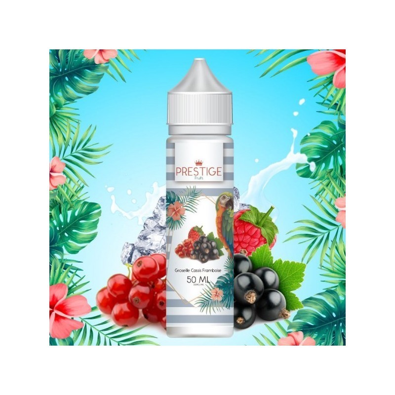 D'origine française, l'e liquide Groseille Cassis Framboise est une invention de la marque Prestige Fruits destinée aux amoureux de la vape Fuitée et Mentholée. Prestige Fruits nous dévoila un e liquide au format 50 ml sans nicotine rempli de fruits rouges : des groseilles, des cassis et des framboises pour le plaisir de ses vapoteurs.