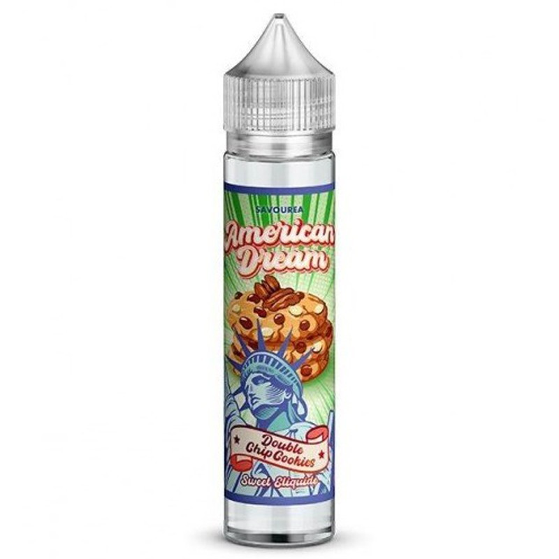 Amoureux d'e liquide gourmand et délicieux ? l' e liquide Double Chip Cookies de la gamme American Dream by Savourea est fait pour vous ! Avec Double Chip Cookies 50ML découvrez le goût irrésistible des cookies croquants au chocolat blanc et au lait, agrémentés d'une noix de macadamia pour une texture et une saveur uniques en bouche.